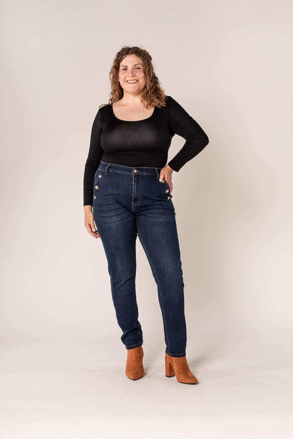 JEAN SLIM GRANDE TAILLE BOUTON BLEU FONCE