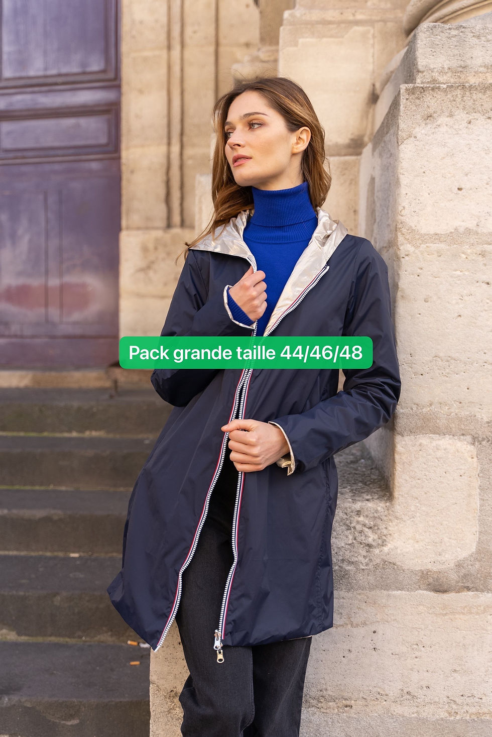 PARKA GRANDE TAILLE VESTE IMPERMEABLE & DEPERLANT REVERSIBLE LINE MARINE GOLD